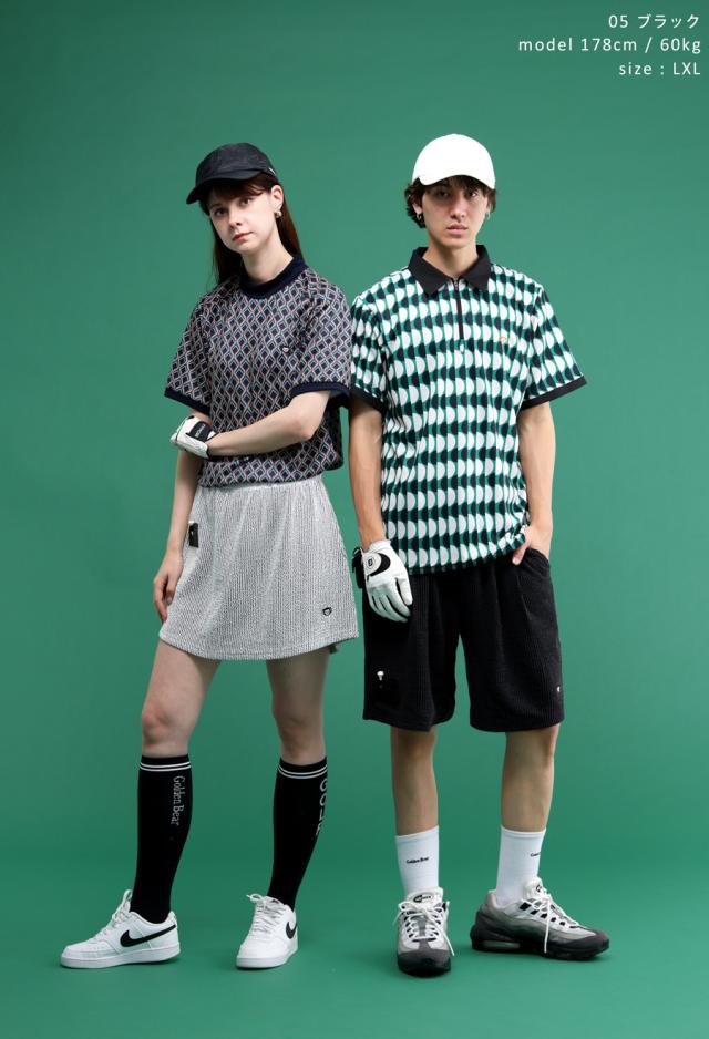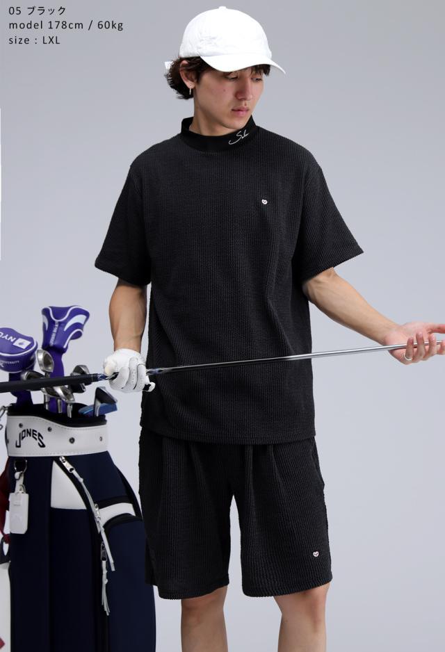 zsl-20006 トップス シャツ プルオーバー ゴルフ ストライプ 柄 凹凸生地 ストレッチ モックネック ロゴ セットアップ スポーツ 軽量 吸汗速乾 普段着 ユニセックス