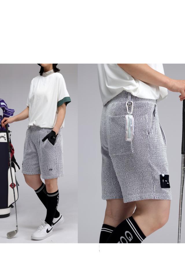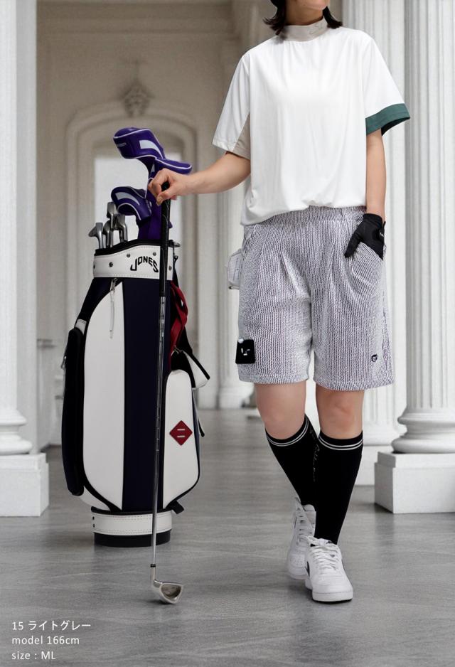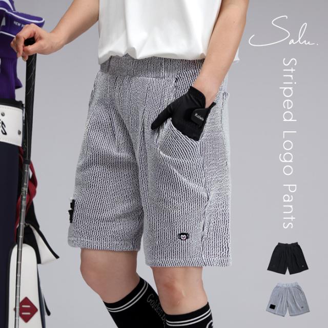 ストライプ柄 ハーフパンツ レディース ゴルフ 刺繍 送料無料・(500)メール便可