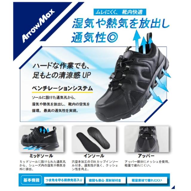 福山ゴム 121 アローマックス#121 25.0〜28.0cm 鋼鉄先芯入り 反射材 軽量 通気性 安全靴 ワークウェア
