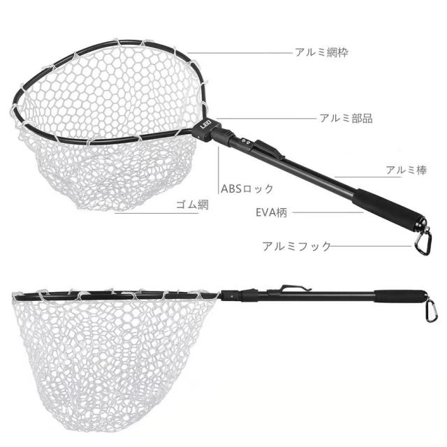 折りたたみ式ラバーネット 玉網 タモ網 超軽量 釣りネット 淡水海水適用 ランディングネット コンパクト 釣り