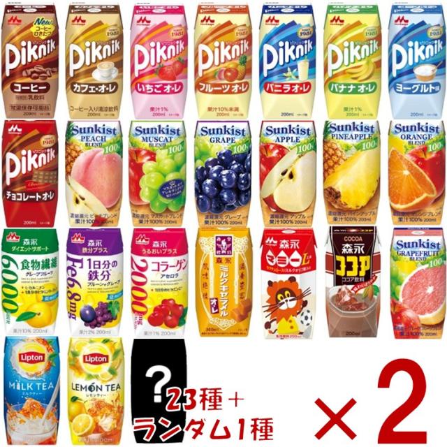 森永乳業 200ml 飲料 23種 + ランダム1個 計24個 アソート セット ピクニック サンキスト ココア キャラメル リプトン TBC マミー 2個