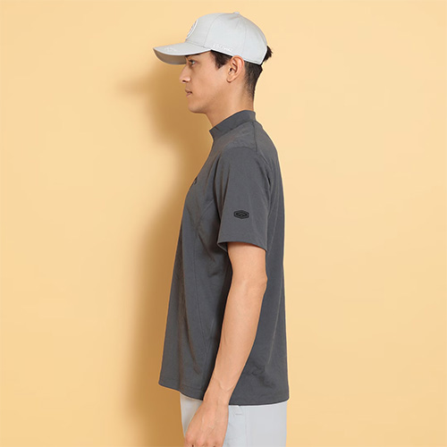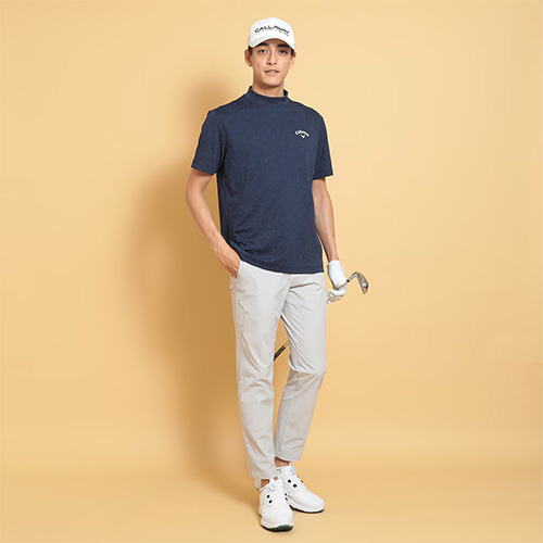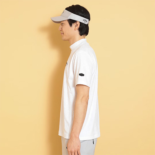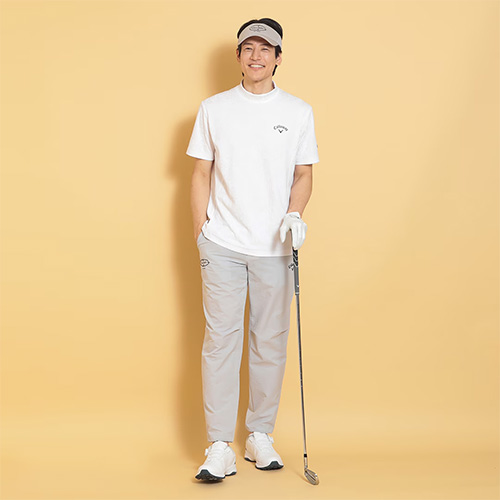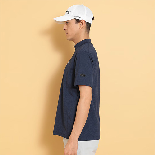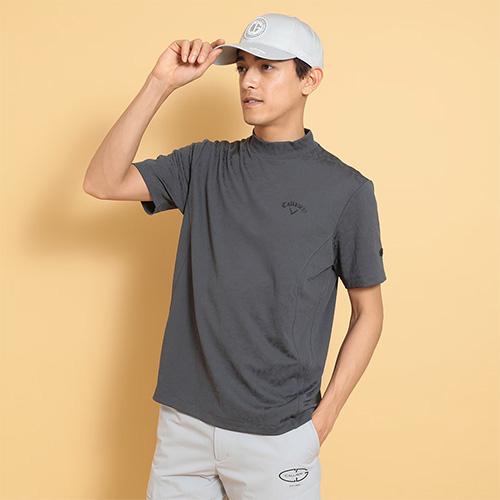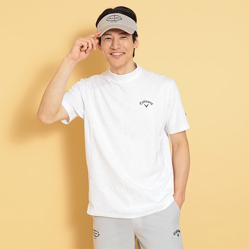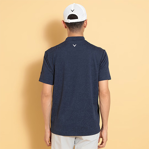 CALLAWAYロゴをタイルのようにアレンジし、ジャガードで表現したモックネックシャツです。奥行きの出る組織になっているので、プリントには出せない付加価値のある一枚です。背裏には「ひんやり感」を得られるクールフェスタを搭載しています。