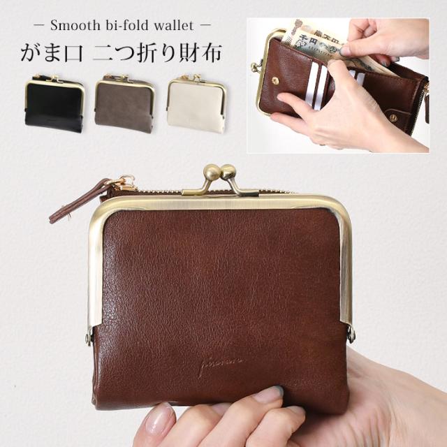 新作 スムース がま口 二つ折り財布 レディース メンズ 大容量 ファスナー 財布 二つ折り コンパクト ウォレット ミニウォレット ミニ財布 コインケース カードケース 札入れ キーリング フェイクレザー シンプル