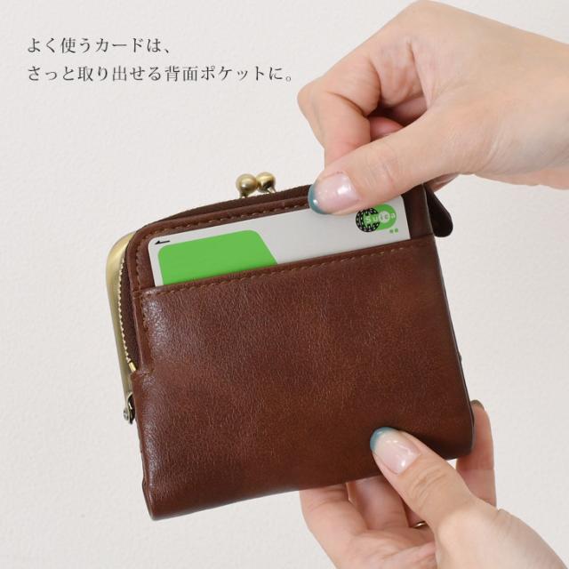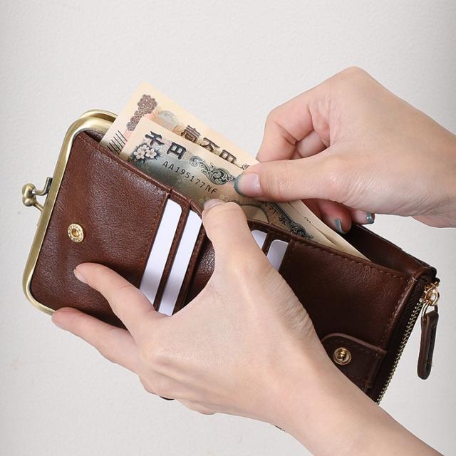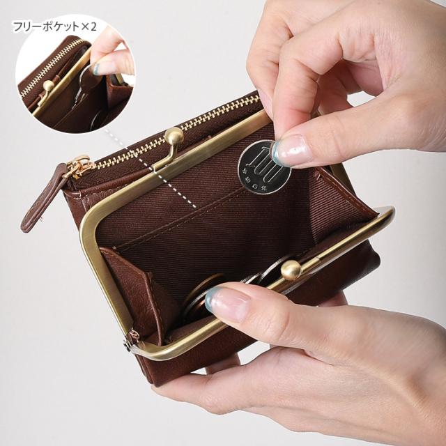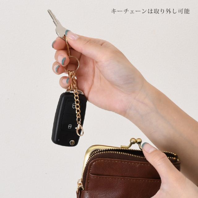 がま口とファスナー付きで、小銭や鍵、小物の収納にも便利