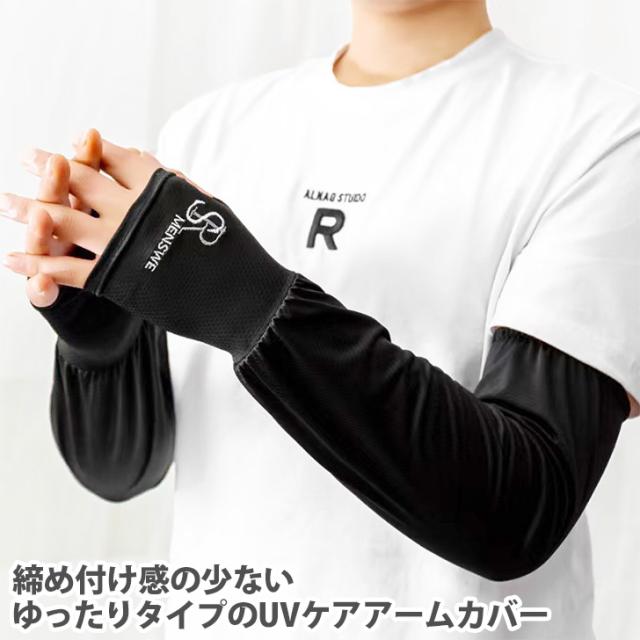 新作 UVケアメンズ刺繍ロゴメッシュゆったりアームカバー レディース アームカバー アームウォーマー アームガード 手袋 手の甲 ロング ルーズ ゆったり 大きいサイズ メッシュ UV 紫外線 夏 スポーツ ゴルフ
