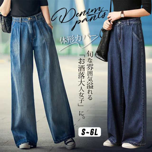 デニムパンツ ワイドパンツ ジーンズ デニム レディース パンツ ゆったり ハイウエスト ゆるカジ ロングパンツ OL ボトムス 綿 美脚 通勤 春 夏 秋 人気 無地 大きいサイズ 小さいサイズ ジーパン サルエル 体型カバー ストレート ゆったり
