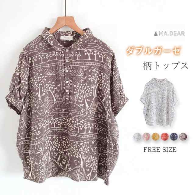 コットン100% シャツブラウス 夏 レディース シャツ ブラウス 半袖 半袖ブラウス トップス ガーゼシャツ 羽織り カジュアル 総柄 柄 大きいサイズ ゆったり 涼しい シンプル 大人可愛い 上品 着回し ガーゼ コットン 柔らかい 重ね着 通勤 通学 日常 ディリー 普段使い