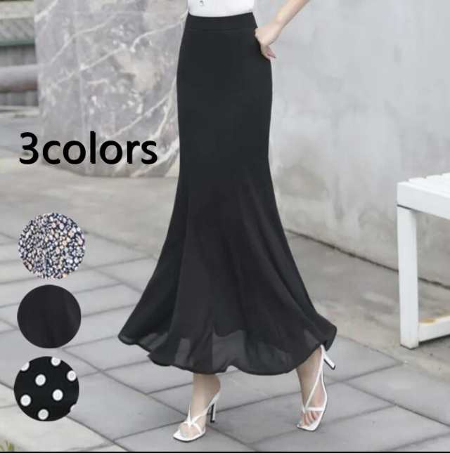 【送料無料】スカート フレア マーメイドスカート シフォン タイトスカート 花柄 ドット水玉 ボトムス レディース ミモレ丈スカート ミディアム丈 ミモレ丈 膝丈 ひざ丈 ハイウエスト 体型カバー ストレッチ ハイウエストスカート ストレッチ 無地 春 夏 冬 秋