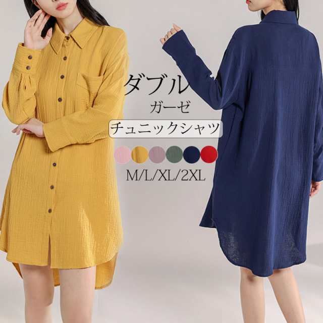チュニック 長袖 シャツ レディース 春 夏 チュニックワンピース 40代 50代 ガーゼシャツ ダブルガーゼ トップス 大きいサイズ 羽織もの ロングシャツ 羽織り シャツ ワンピース ロング 綿100% 無地 体型カバー ゆったり 柔らかい 通気性 吸湿性 保温性 部屋着 通勤 大人