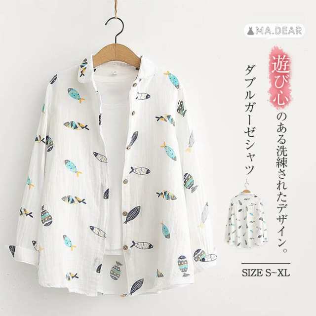 ガーゼ シャツ 夏 レディース コットン100% ガーゼシャツ 長袖 ダブルガーゼ レディースシャツ トップス 総柄 長袖シャツ 薄手シャツ ゆったり 春夏 秋 ゆるー 体型カバー ガーゼ 夏シャツ ナチュラル なつ 柄 総柄シャツ 花柄 柄 ガラ 可愛い柄 清楚 大人 可愛い 綿100%