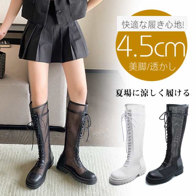 送料無料 ブーツ サマーブーツ ロングブーツ フェイクレザー 楽ちん レディース 美脚 おしゃれ シューズ 靴 2色 春夏秋 防滑 靴 滑らない