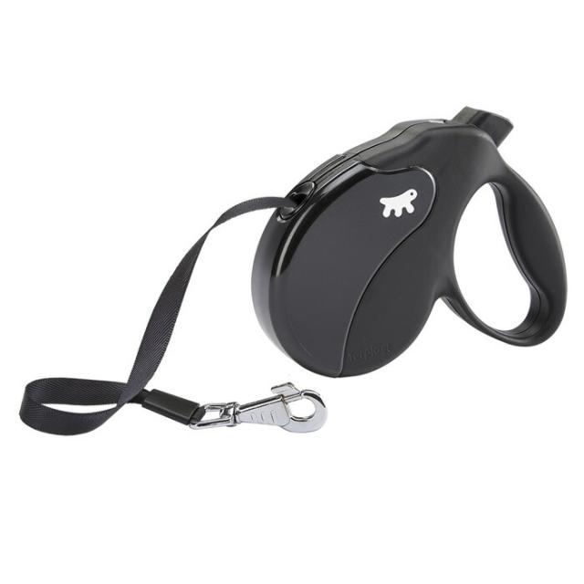 ワンちゃんの動きに合わせて自在に調節できる伸縮リード。
