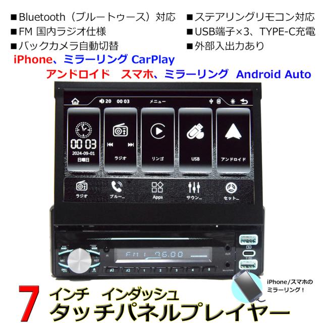 車載 カーナビ 1DIN 7インチインダッシュプレーヤー ラジオ USB Bluetooth内蔵 CarPlay ミラリング Android Auto iPhone 無線接続 外部入出力あり