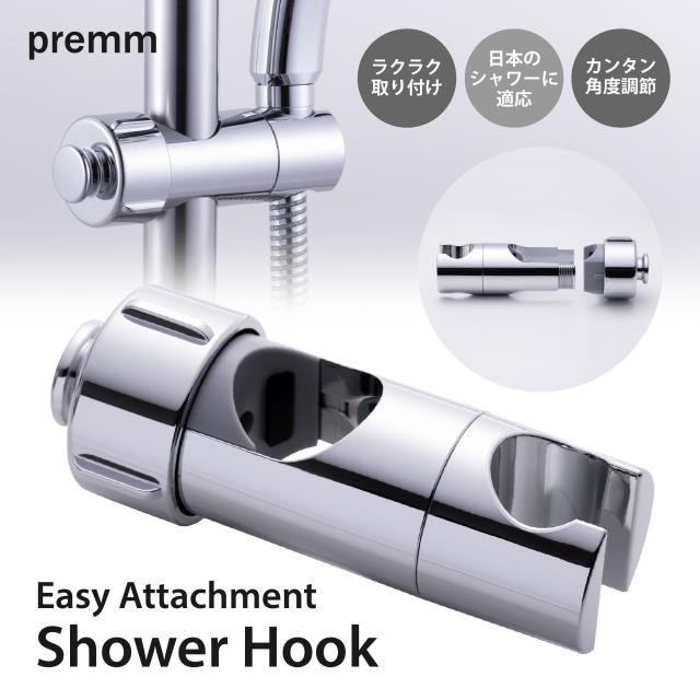 公式 シャワーフック PREMM 日本サイズ規格品 シャワーバー 取替え用 後付けタイプ 360度 角度調整