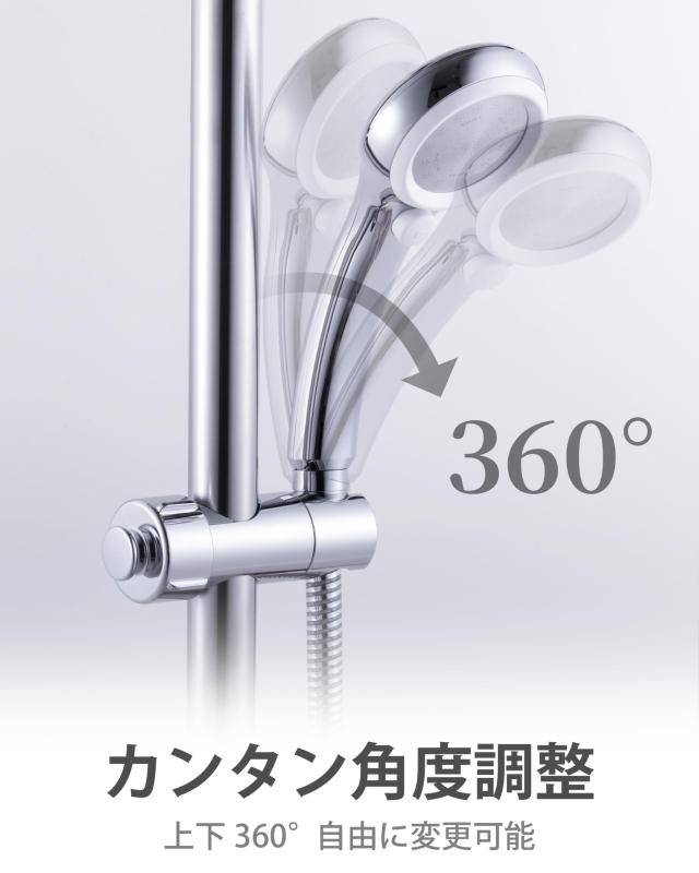 フックの角度は360℃調整可能で、最適な位置にシャワーヘッドを設置できます。お好みに合わせて自由に調整してください。