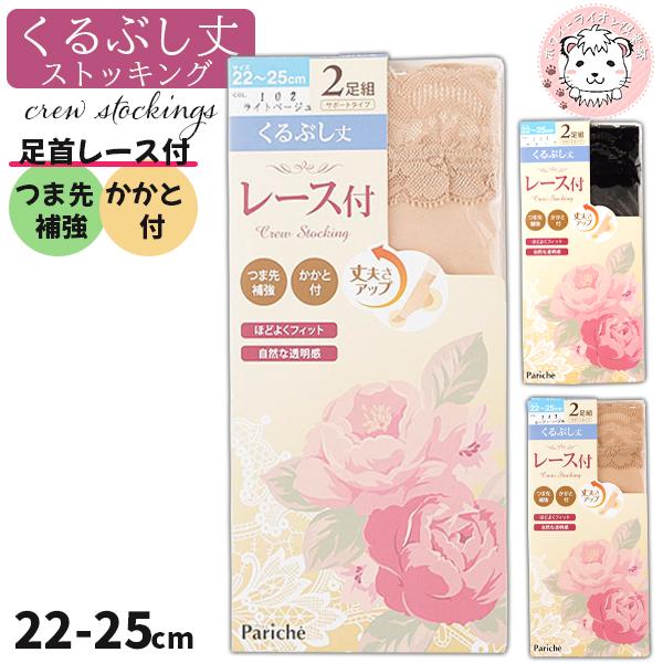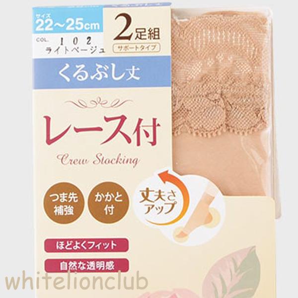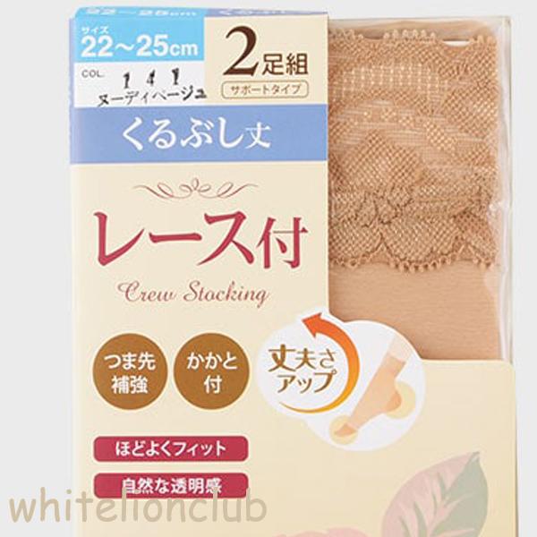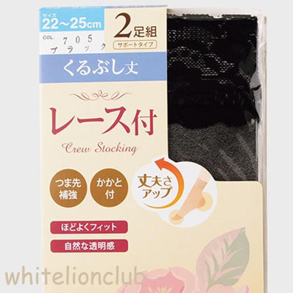 レース付き くるぶし丈 ショートストッキング 2足組 つま先補強 かかと付き 22-25cm | レディース 靴下 くつ下 ショート丈 ストッキング 足首丈 ムレ対策
