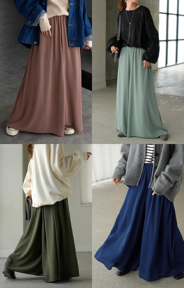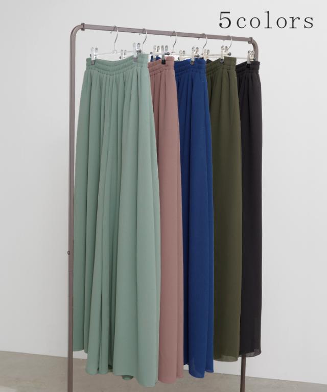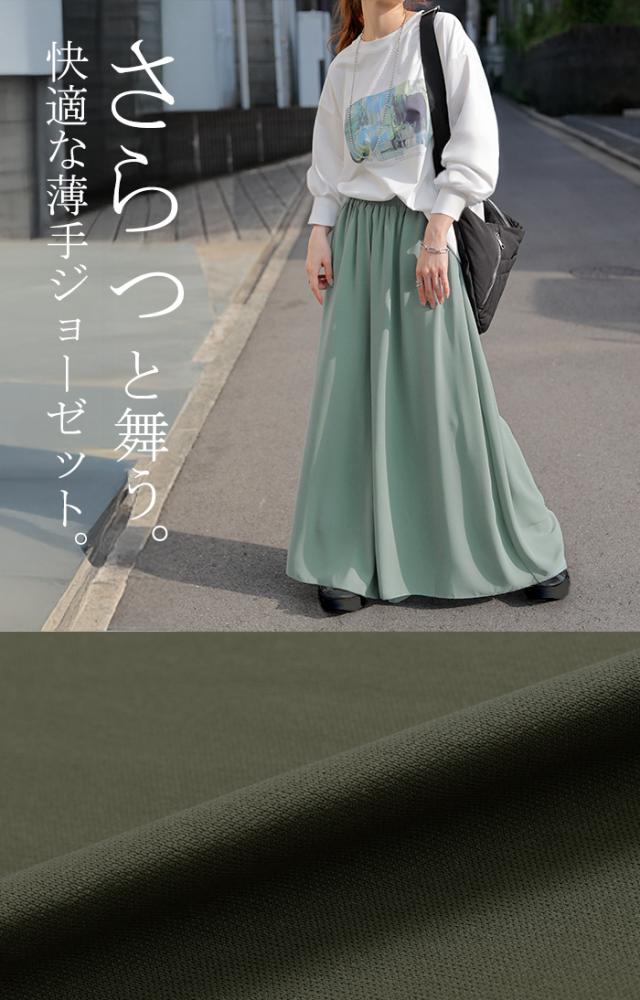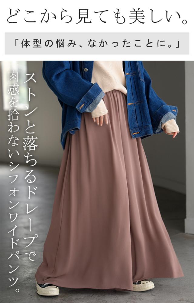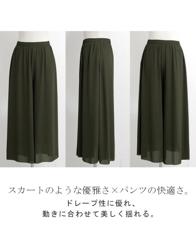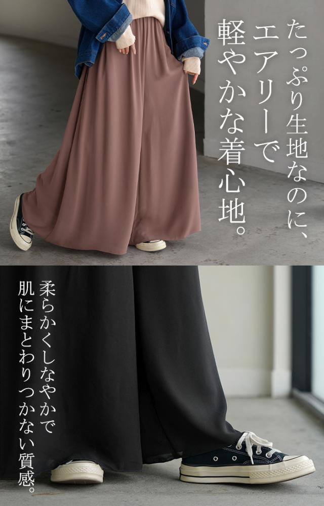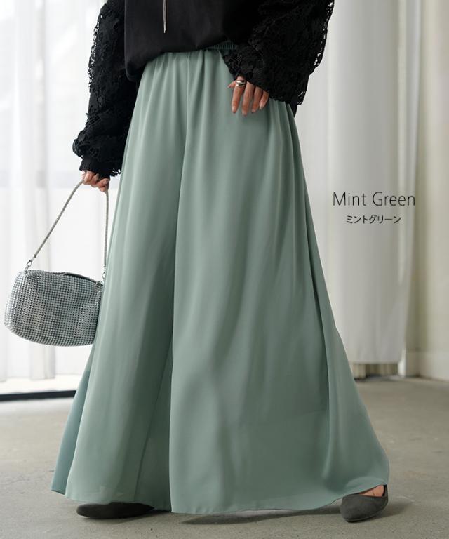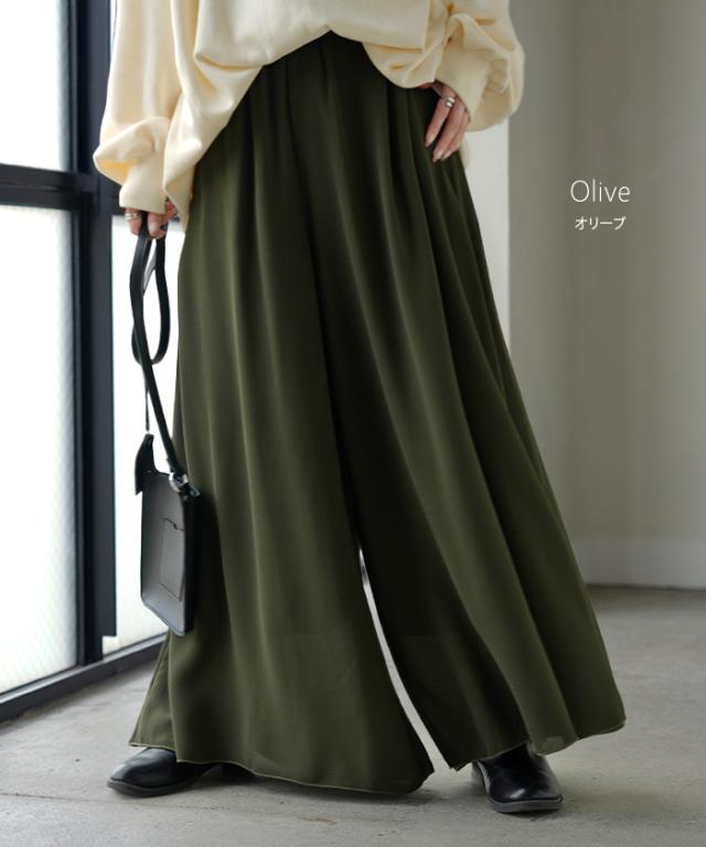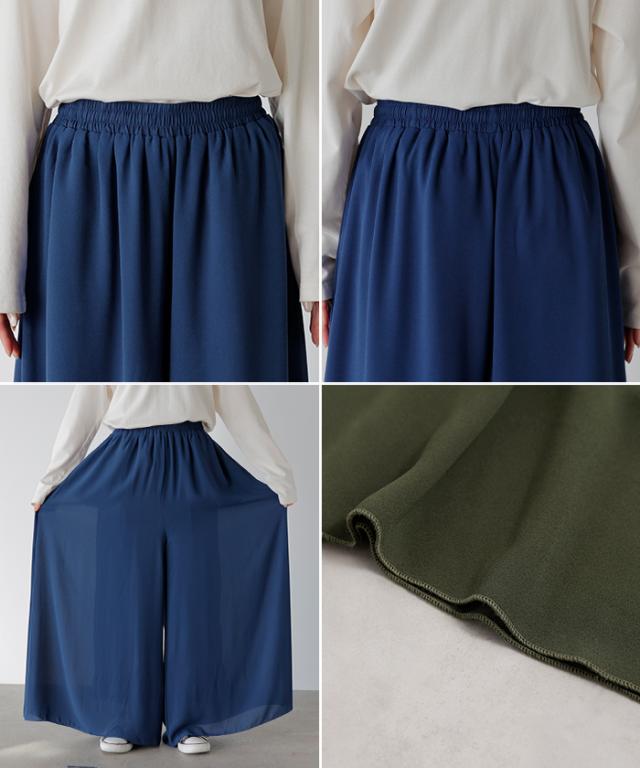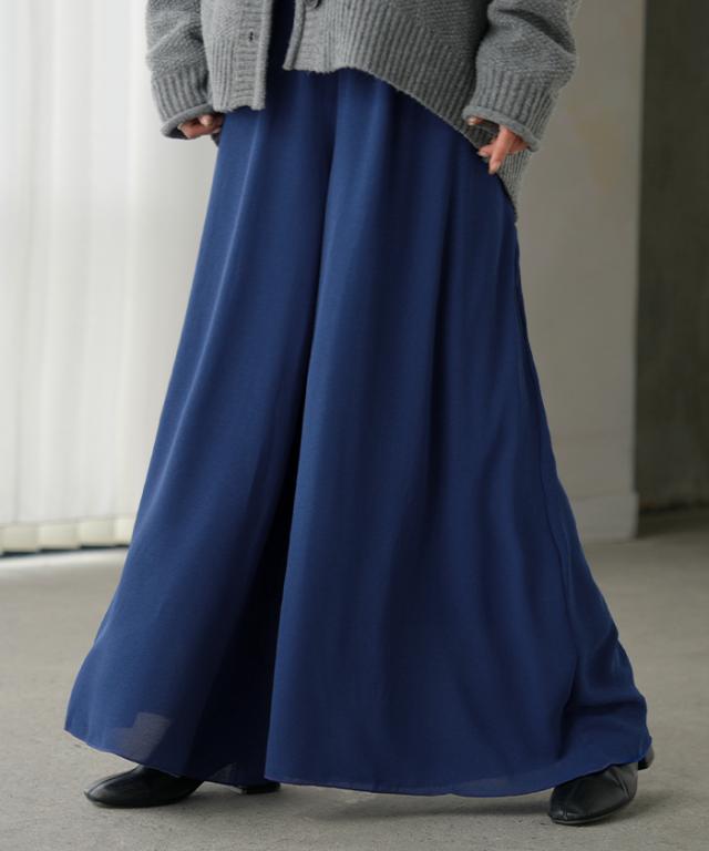 さらりと揺れる軽やかシフォンスカートライクなワイドパンツです。