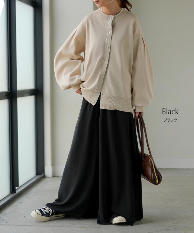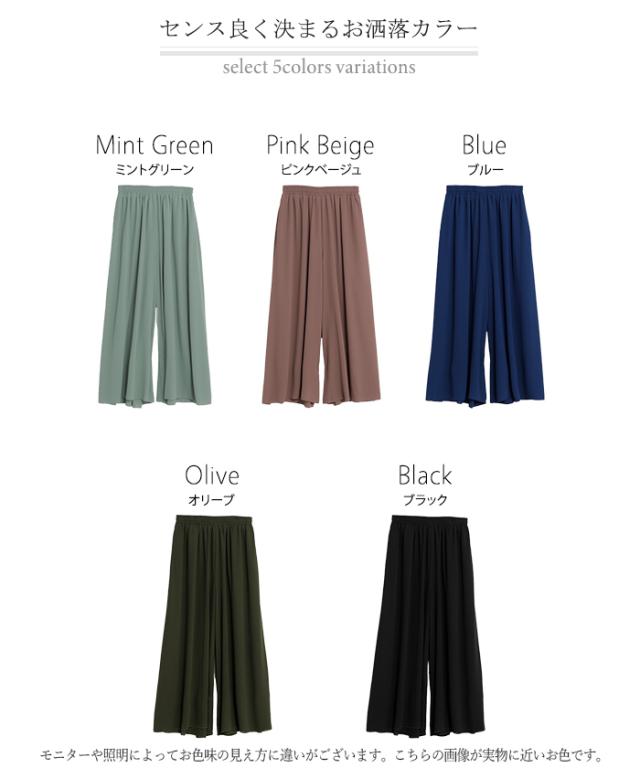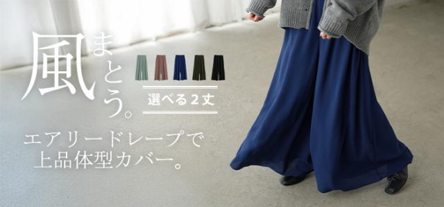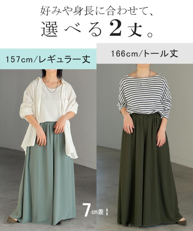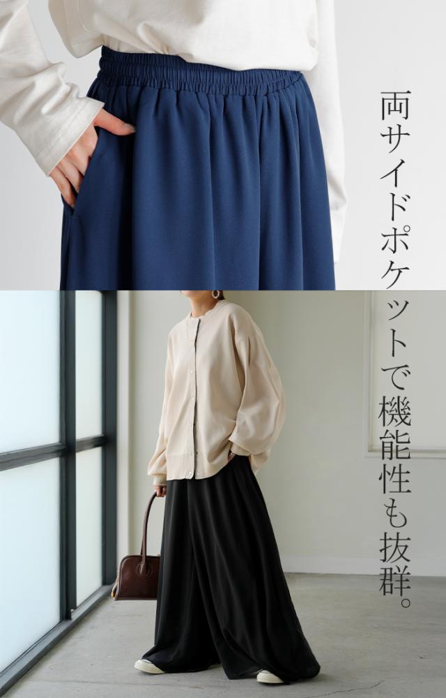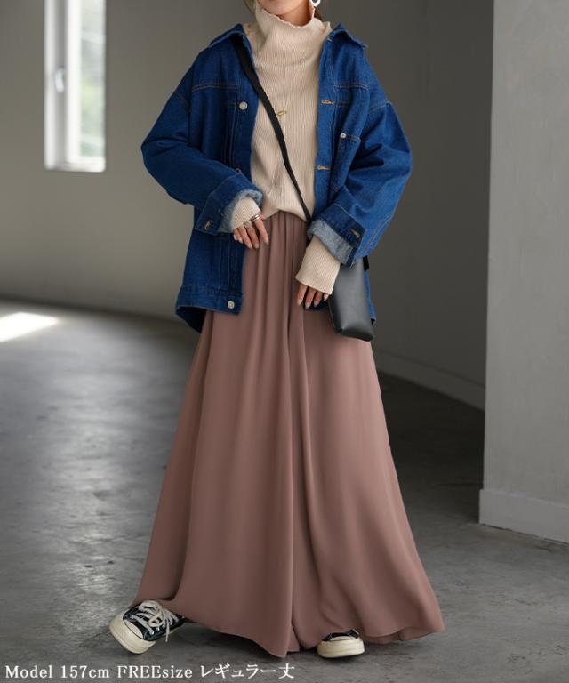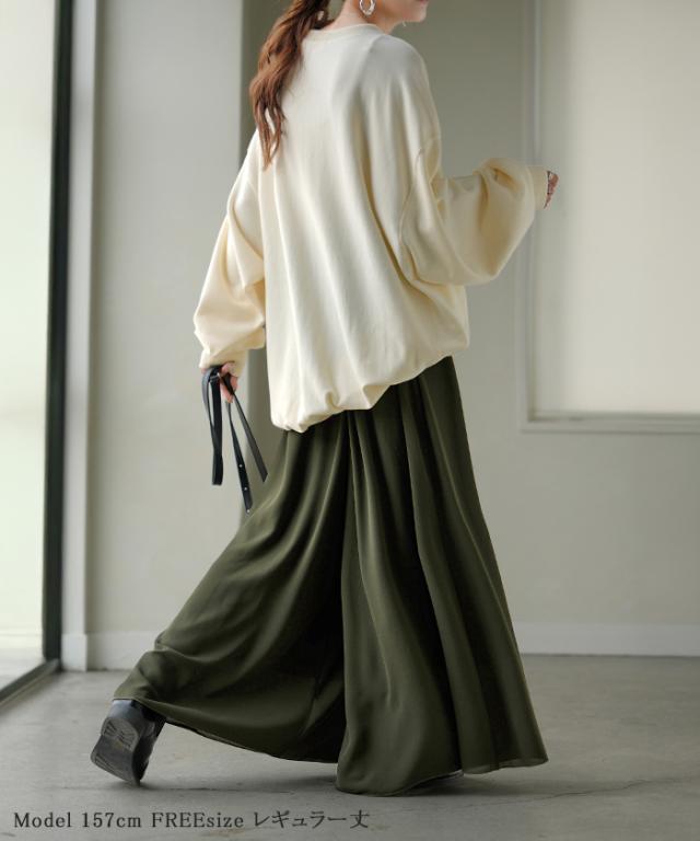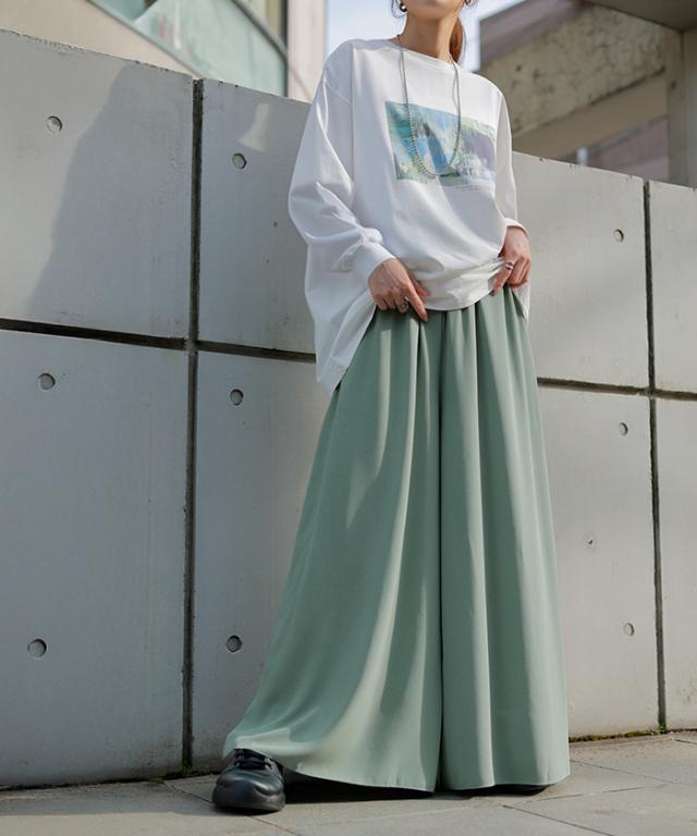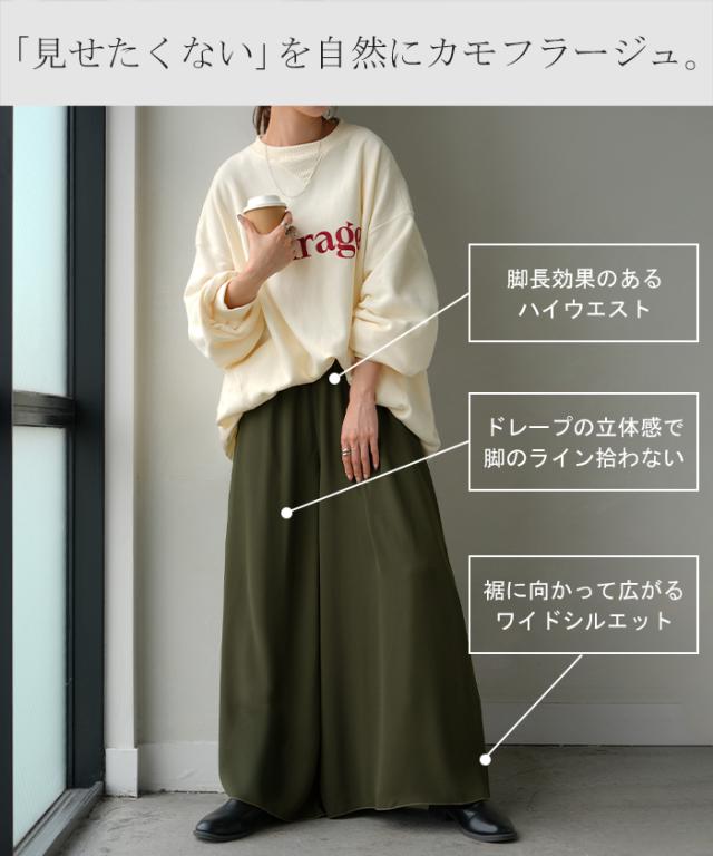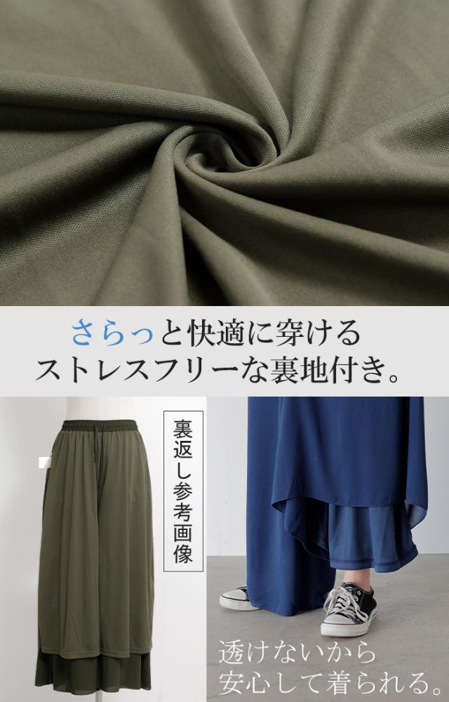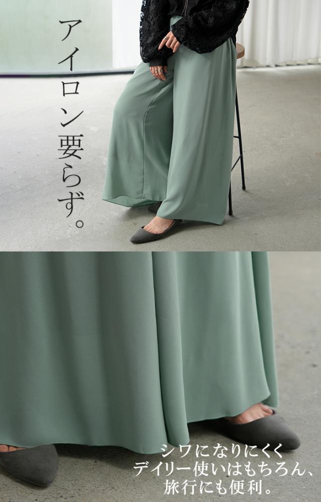 さらりと揺れる軽やかシフォンスカートライクなワイドパンツです。