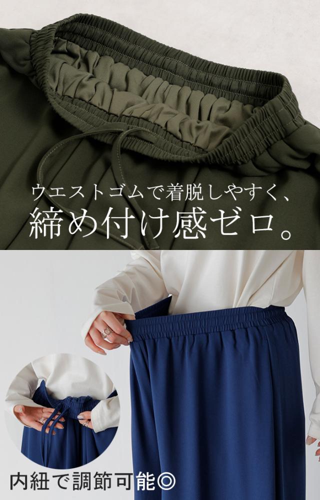 パンツ ワイド 選べる 2丈 シフォン ワイドパンツ レディース ロング ロングパンツ 体型カバー ボトムス ボトム フレア ストレート ズボン ゆったり ゴム ハイウエスト 軽量 ストレッチ 美脚 大きいサイズ きれいめ カジュアル 黒 青 春 夏 HUG.U 秋新作