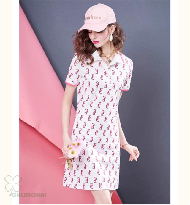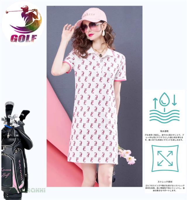 ゴルフウェア レディース ゴルフ ドレス ワンピース 丈長め ゴルフ スカート 半袖ワンピース 春 夏 新作 立体裁断