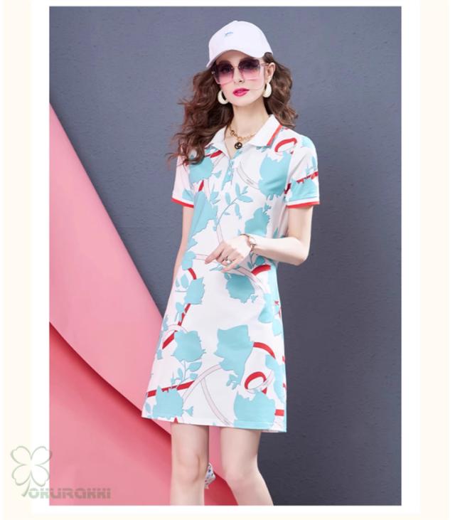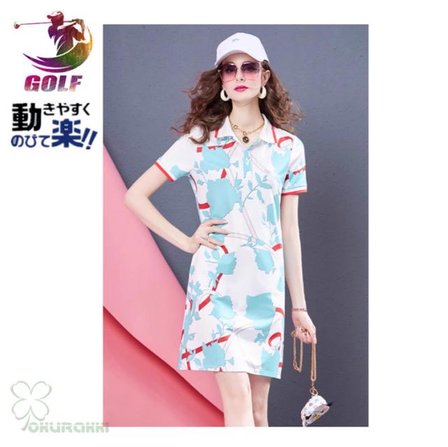 ゴルフウェア レディース ゴルフ ドレス ワンピース 丈長め ゴルフ スカート 半袖ワンピース 春 夏 新作 立体裁断