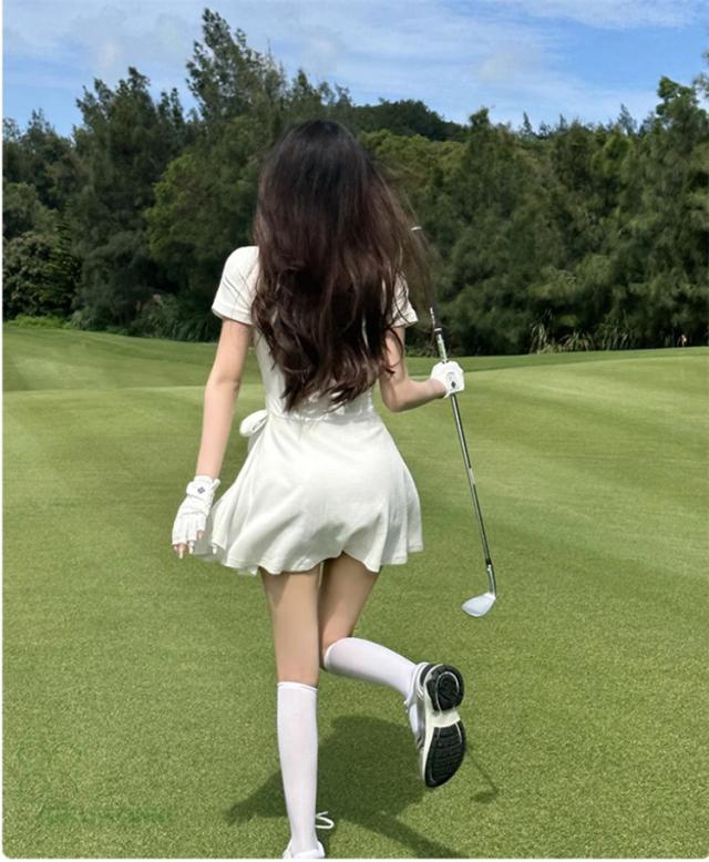 ゴルフウェア レディース ゴルフ ドレス ワンピース 丈長め ゴルフ スカート 半袖ワンピース 春 夏 新作 立体裁断