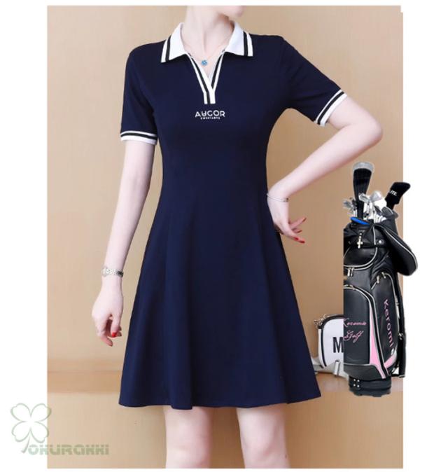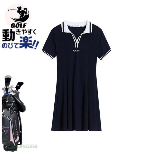 ゴルフウェア レディース ゴルフ ドレス ワンピース 丈長め ゴルフ スカート 半袖ワンピース 春 夏 新作 立体裁断