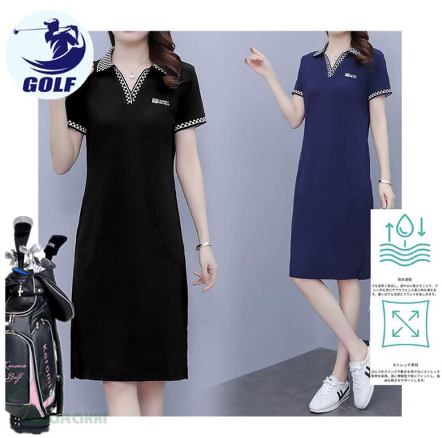 ゴルフウェア レディース ゴルフ ドレス ワンピース 丈長め ゴルフ スカート 半袖ワンピース 春 夏 新作 立体裁断