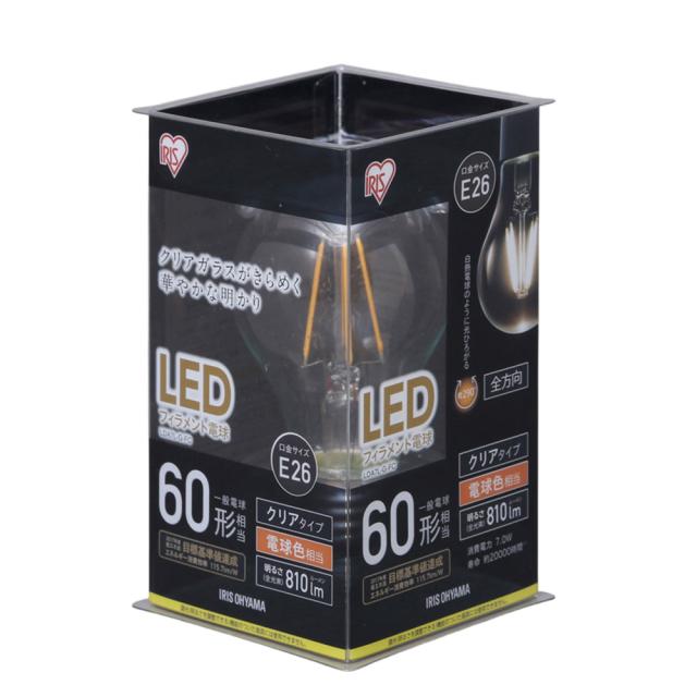 LEDフィラメント電球 E26口金 全方向タイプ 60W形相当 電球色 LDA7L-G-FC(クリアタイプ) 1個 アイリスオーヤマ LED電球