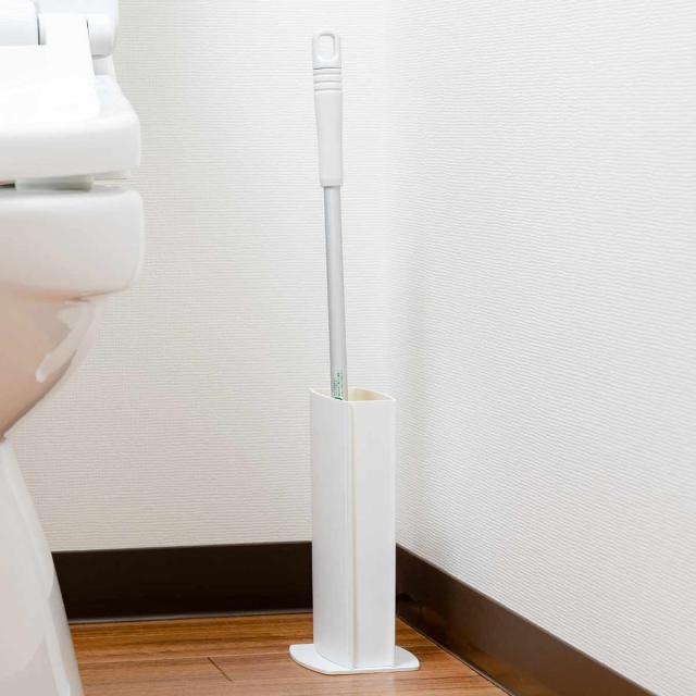収納場所の少ないトイレのことを考え、専用の収納ケースをセットしました。吊るす必要もなく、スッキリと収納できます。