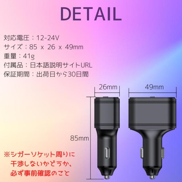 ※車種によってはシガーソケットが奥まっていて取り付けられない場合もありますので注文前にスペースの確認をして下さい。
