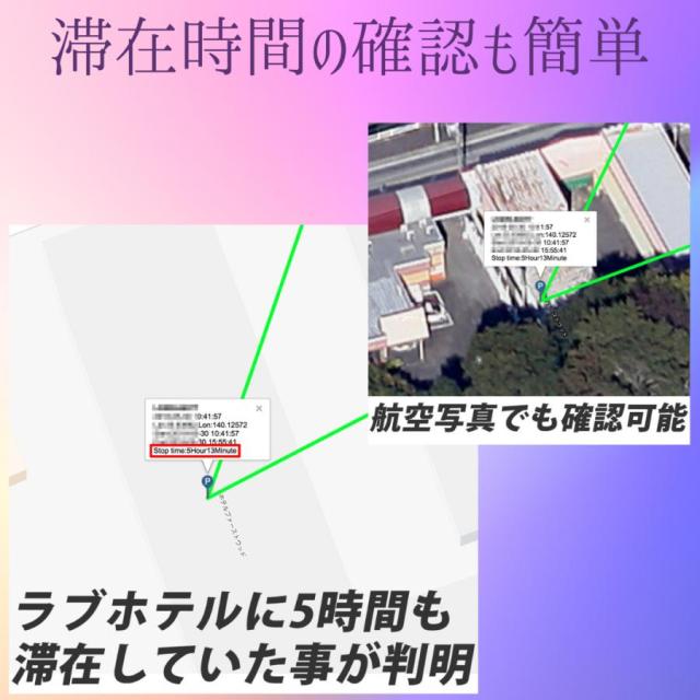 リアルタイム追跡と指定した日時の足取り(軌跡)をスマホのアプリで簡単に把握できます。