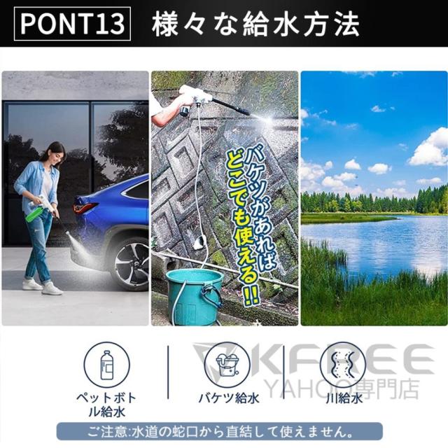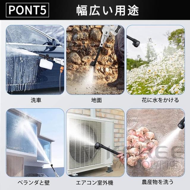 ポータブル洗車機のため、高圧水洗機は庭の散水や植木の水やり、打ち水などに便利です。マンションなどのベランダと窓はもちろん、車、バイク、自動車、自転車などの洗車機器、年末など定期掃除、BBQなどキャンプ用品の掃除、 庭の植木散水、お風呂や室内汚れの掃除、農産物の泥洗浄、塩害や台風後など大面積の地面掃除など場合におすすめます。
