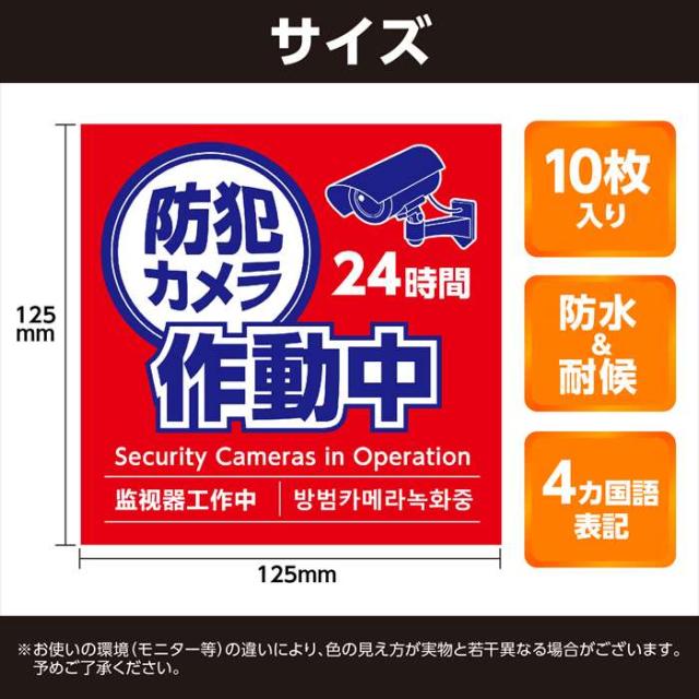 ■商品名:防犯カメラ作動中ステッカー125×125mm 10枚セット