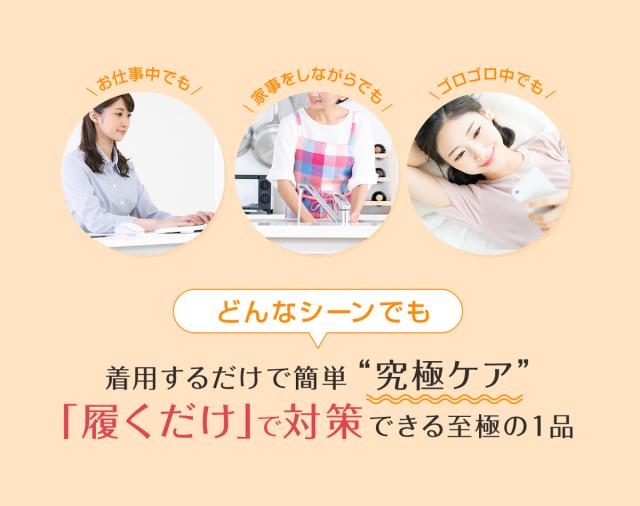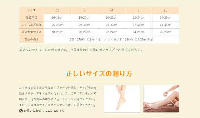 | ご注意 | ●正しいサイズを着用してください。●圧迫が強くなりますので重ねて使用しないでください。●着用中、気分が悪くなったり、異常を感じたら使用を中止してください。 ●次の方は医師に相談の上、着用してください。血圧の高い方、糖尿病の方、心臓・肝臓に障害のある方。/皮膚に異常のある方。/血行障害のある方。 |