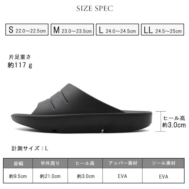 ヒール高:約3.0cm / 底幅:約10.0cm/ 甲外周り:約20.0cm / 素材:EVA / 片足重さ:約117g