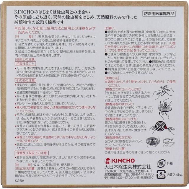 蚊取り線香 蚊除け 駆除 忌避剤 天然除虫菊 金鳥の渦巻 紙函 10巻入 線香立て付き