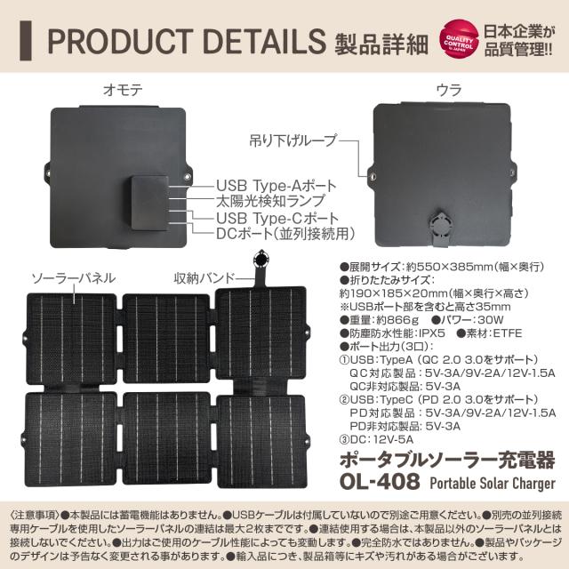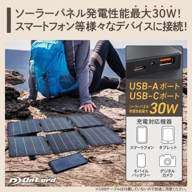 ポータブルソーラー充電器 ソーラーパネル 30W 6枚 折りたたみ OL-408