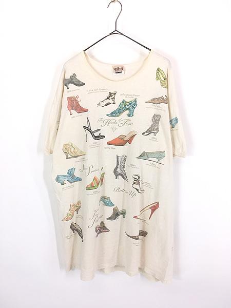 レディース 古着 90s USA製 rel e vant products パンプス ヒール 総柄 アート デザイン Tシャツ ワンピース XL位 古着