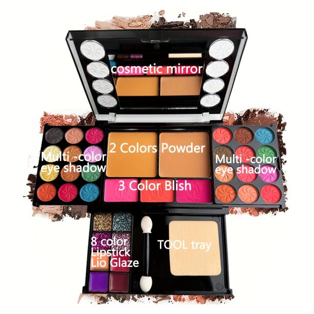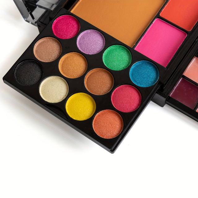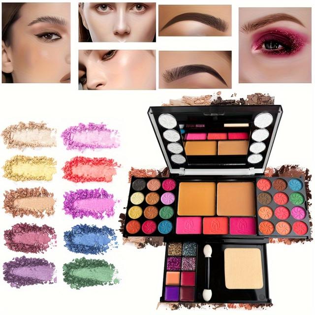 初心者向け37色マルチファンクショナルメイクアップパレット、パウダーパフ・アイシャドウブラシ・コントゥアリング&ブラッシュ付きフルセット メイクキット 母の日ギフト