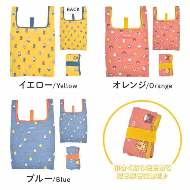 エコバッグ miffy ミッフィー 折りたたみ コンパクト 軽量 マチ付き キャラクター ショッピングバッグ 買い物バッグ かわいい おしゃれ 総柄 しっかり 丈夫 柔らか イエロー オレンジ ブルー レジ袋 買い物袋 コンビニ 旅行 サブバッグ 女性 プチ ギフト プレゼント