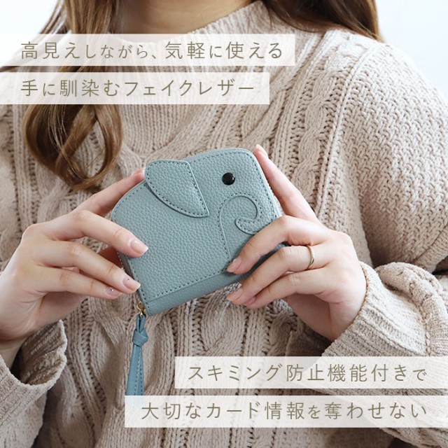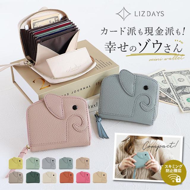 LIZDAYS リズデイズ ミニ 財布 二つ折り 通販 ミニ財布 二つ折り財布 二つ折財布 小銭入れ カードケース ウォレット じゃばら ジャバラ 小さい コンパクト レディース ゾウ型 像 ゾウ ファスナー お札 コイン カード かわいい 可愛い