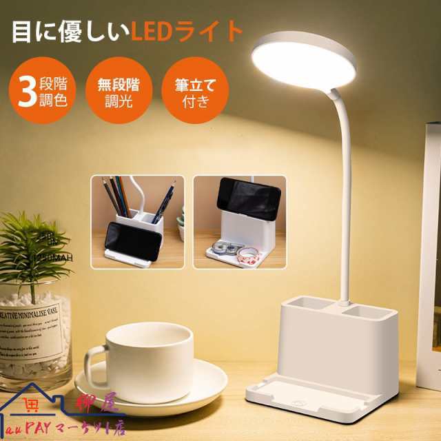 デスクライト コードレス led 目に優しい タッチセンサー スタンドライト 電気スタンド 卓上ライト 無段階調光 3段階調色 スマホスタンド
