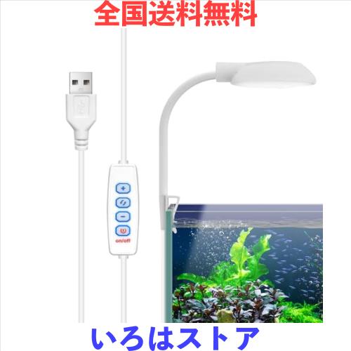 水槽 ライト 小型 USB クリップライト 5W / 4色 / 3つモード/ 10段階調光 28個LEDビーズ アクアリウム用 水草育成 観賞魚飼育 (ホワイト)