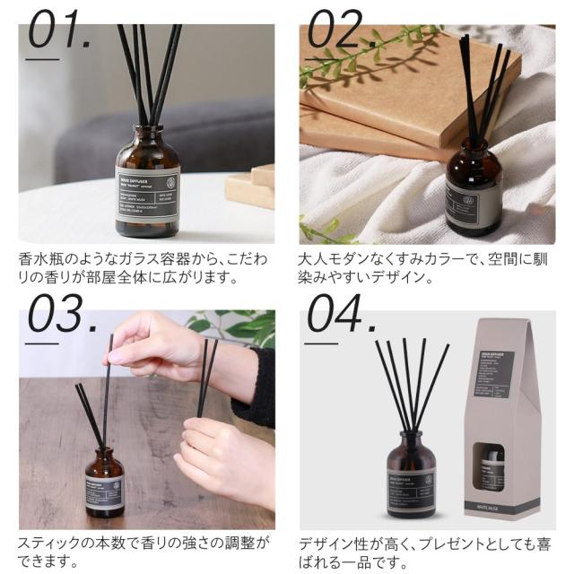 リードディフューザー ホワイトムスクの香り ディフューザー おしゃれ ルームフレグランス ついで買い特集 【 スティック香水 部屋 インテリア 】 /60N◇ ドゥディフューザー