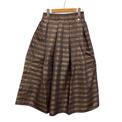【中古】トレンドドレスコード Trend Dress Code フレアスカート ミディ丈 チェック TC222L015E 38 茶 ブラウン レディース