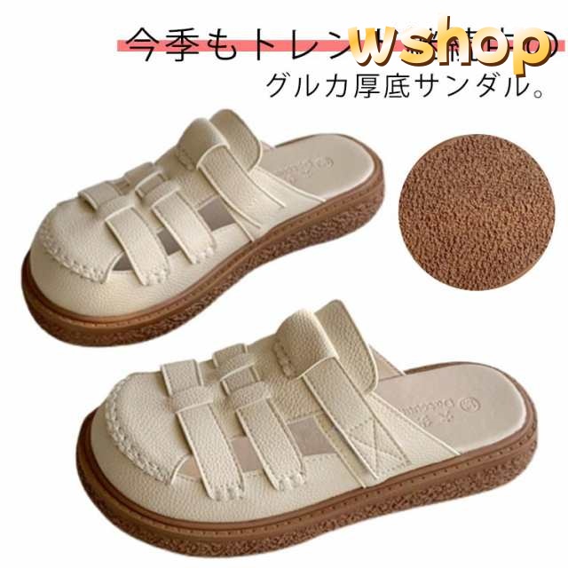 | 今季もトレンド継続中のグルカ厚底サンダル。 かかと部分をなくし、気軽にさっと履けて出かけられる。 前から見るとクロス編みアッパーが足元に絶妙な抜け感を作ってくれ、大人っぽくきれいめな印象に。 後ろから見るとかかとがなく日常使いしやすいデザインに仕上げました。 甲部分には触り心地の良いソフトな人工皮革を使用しています。 さりげないクッションソールで疲れにくく美脚効果も期待できます。 | |