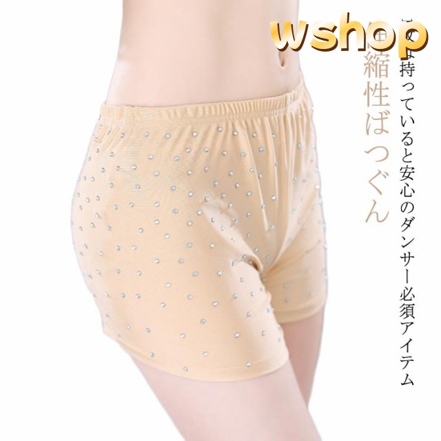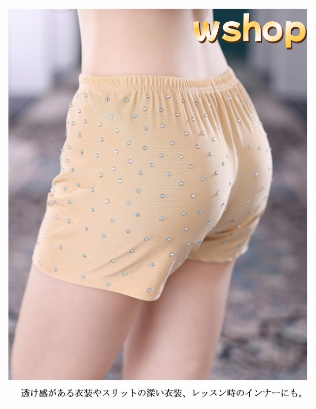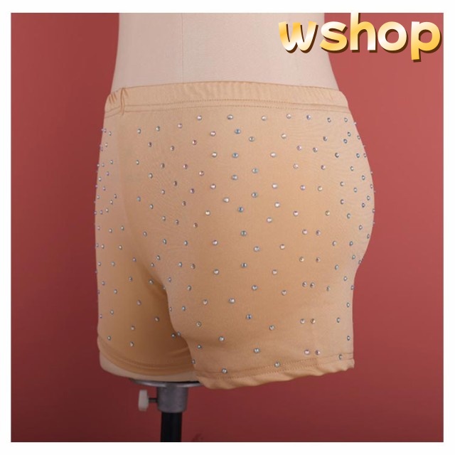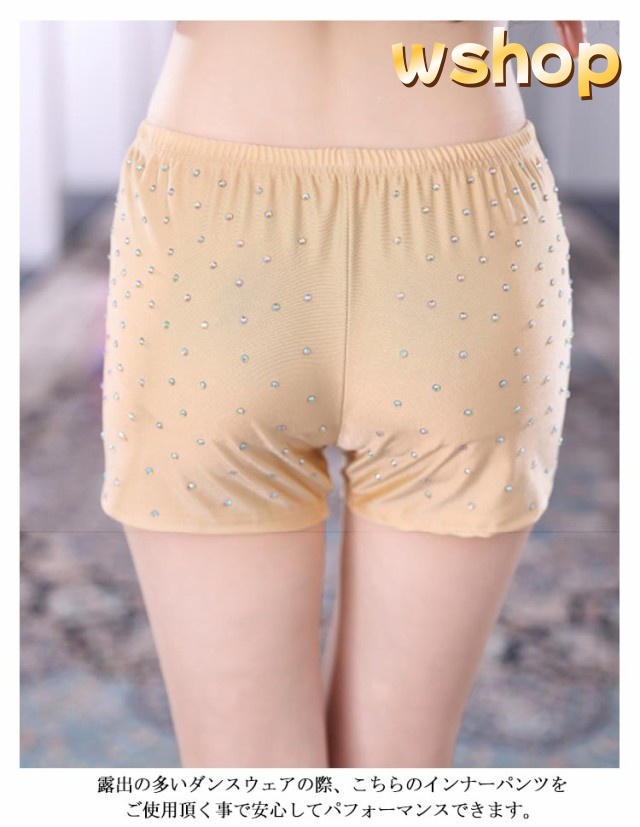 【wshop 】インナーパンツ 見せパンツ ベリーダンス 三分丈 肌色 キラキララインストーン付 レディース 女性 インナーショートパンツ 伸縮性ばつぐん ダンスインナー ショーツ ベリーダンス衣装レッスンウエア ラインストーン飾り付 社交ダンス ストレッチ素材