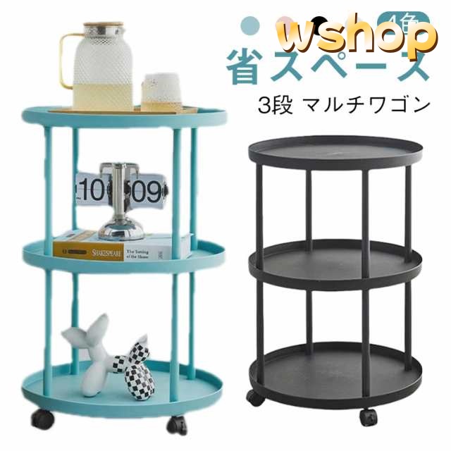 即納OK ランキング常連 組立簡単 ベッドサイド 】ベッド周り プラスチック 北欧 棚 【wshop 3段 マルチワゴン 軽量設計 サイドテーブル 収納 物置棚 ソファー周り ワゴン サーキュラー 丸 省スペース キャスター付き 今だけ限定