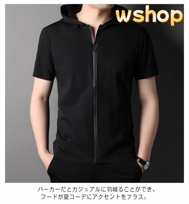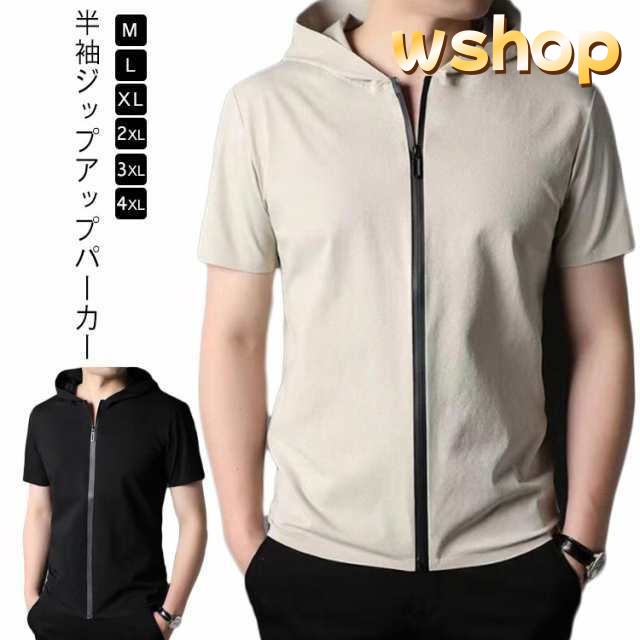 収納便利 SNS話題 】ジップアップ ブルゾン ゴルフ カジュアル フード付き スリム アウター アウトドア ランニング スポーツ ウェア ジップパーカー 【wshop 大きいサイズ メンズ ジップアップパーカー パーカー 吸汗 細身 半袖ジャケット 半袖 在庫わずか